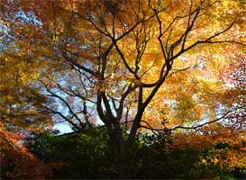 | 天然記念物 大銀杏 まるで根っこを天に広げたような形から「逆さ銀杏」とも呼ばれる樹齢約400年の大銀杏は、京都市の天然記念物に指定されています。本願寺に火災があった時、この銀杏から水が噴き出して消し止めたという伝説から、「水吹き銀杏」とも呼ばれている | |||