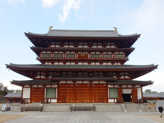 | 百万巻写経勧進により昭和51年に白鳳時代様式の本格的な金堂として復興 | 西の塔 | ||