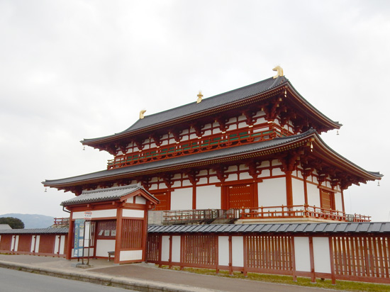 | 大極殿 朱雀門の真北約800mに堂々とそびえる「大極殿」。正面約44m、側面約20m、地面より高さ約27m。直径70cmの朱色の柱44本、屋根瓦約9万7000枚を使った平城宮最大の宮殿 シルクロードの終着点 | |||
