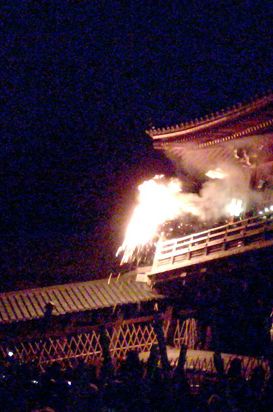 | お水取りの時には観覧広場 | お水取り松明はこの会談を駆け上がり舞台に向かう | ||