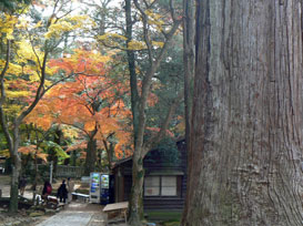 | 三代目の良弁杉 東大寺の初代別当 良弁(ろうべん)僧正は、赤ん坊のときに鷲にさらわれ二月堂のこの大きな杉の木におろされたというお話は文楽や歌舞伎にもなっている | |||