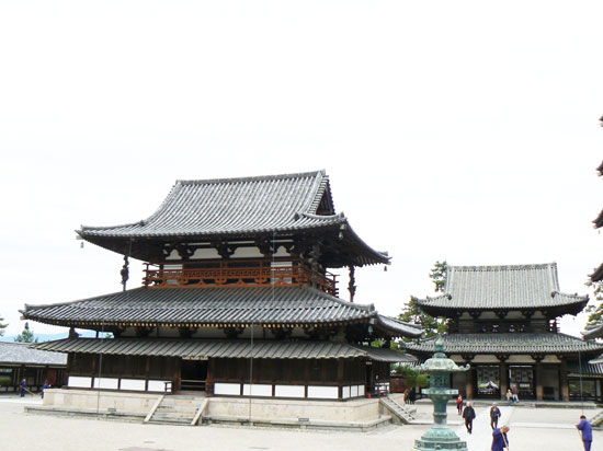 | 東院堂は、正面7間、側面4間の入母屋造本瓦葺。高い基檀の上に建つのは、水害・湿気を避けるため、鎌倉時代後期の和様仏堂の好例。白鳳仏を代表する国宝聖観世音菩薩が安置され四天王像が守護しています | |||
