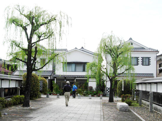 | 白壁の町並み 柳井駅から徒歩10分 マップ 2010年10月14日 古市・金屋地区は、約200mの町筋に、江戸時代の商家が立ち並び「白壁の町並み」と言われています。中世の町割がそのまま残り、妻入形式、本瓦葺、入母屋型の屋根、白漆喰 ・土蔵作りの商家の家並が続く 右端は元周防銀行本店で現在は町並み資料館で松島詩子記念館ともなっている |